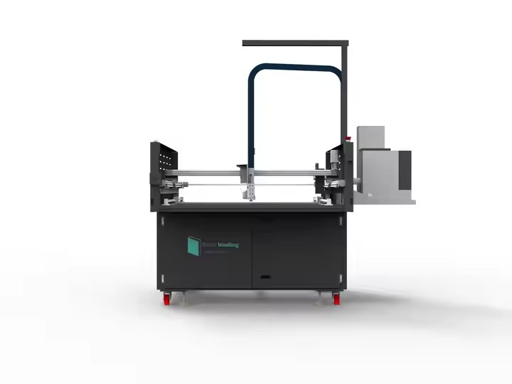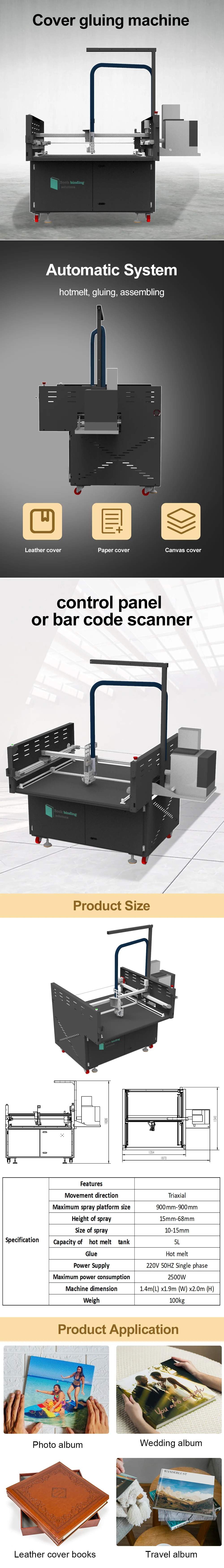 Cover gluing machine Cover gluing machine is a semi automatic casing in machine. You may preset the trace of hot melt which needs to spray onto the cover. The machine sprays the hot melt onto the cov...